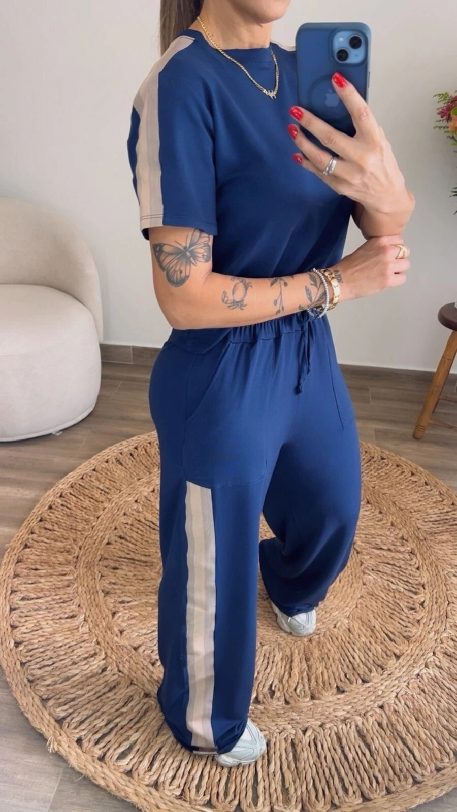 Composto por calça e blusa de manga curta, feito em moletinho, o Conjunto Mariele é perfeito para quem ama se vestir bem sem abrir mão do conforto.
